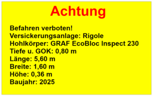 Die fertige Rigole ist durch ein Hinweisschild zu kennzeichnen